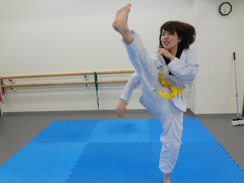 今週のベストキック選手権大会 未分類 2014.06.222015.02.13 今週のベストキック選手権大会の優勝者は、大人クラスのAさんです! テコンドーをはじめて1年半の選手です。 始めた頃は身体も弱く、運動向きな体質ではなかったのですが、今では筋力もつき、男性にも負けないくらいの選手になりました。 画像からも伝わってきます【自信に満ちた雰囲気とオラオラ感(笑)】が。 これからも頑張ってください!