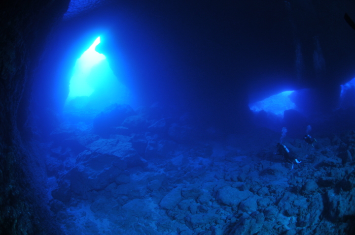 私達以外にも、沢山のダイバーさんが楽しんでいました、海に通じる入り口は3つあるとの事。