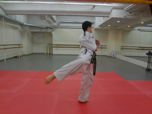 更に、上半身が真っ直ぐだと、大降りにならず【直線的に出しやすい為】素早く強い蹴りを打つ事ができます。