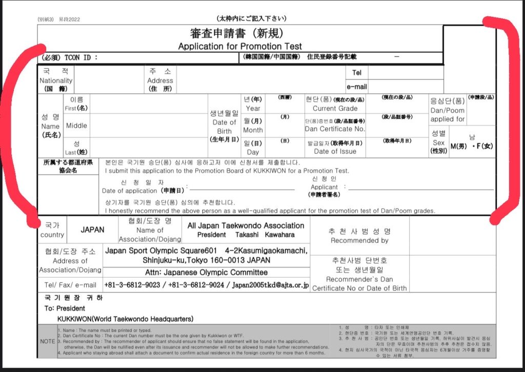 提出後は私の方で、東京都テコンドー協会へデータと受講料の送金を致します。